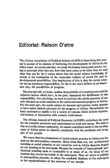 Editorial : Raison D'etre
