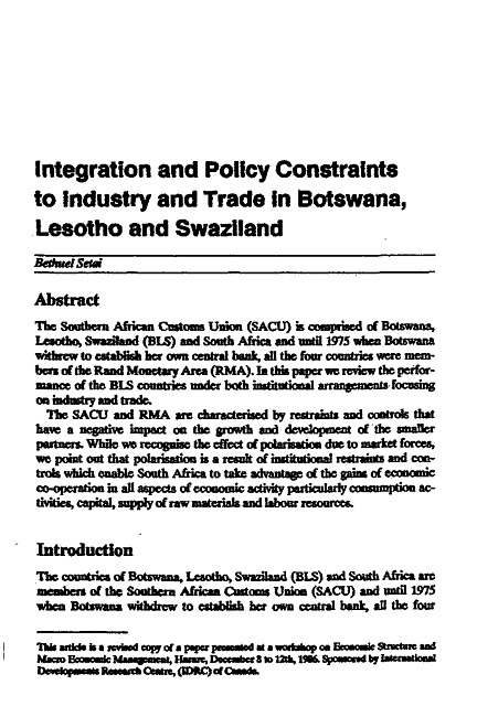 Integration and policy constraints to industry and trade in Botswana, Lesotho and Swaziland