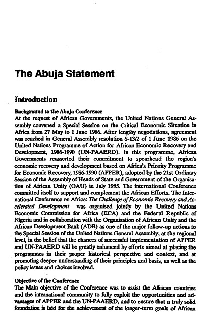 International Conference on Africa: the Challenge of Economic Recovery and Accelerated Development (1987 : Abuja, Nigeria)