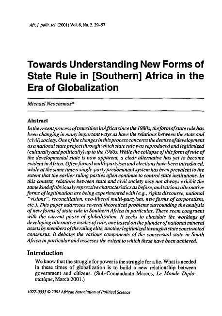Towards understanding new forms of state rule in [Southern] Africa in the era of globalization