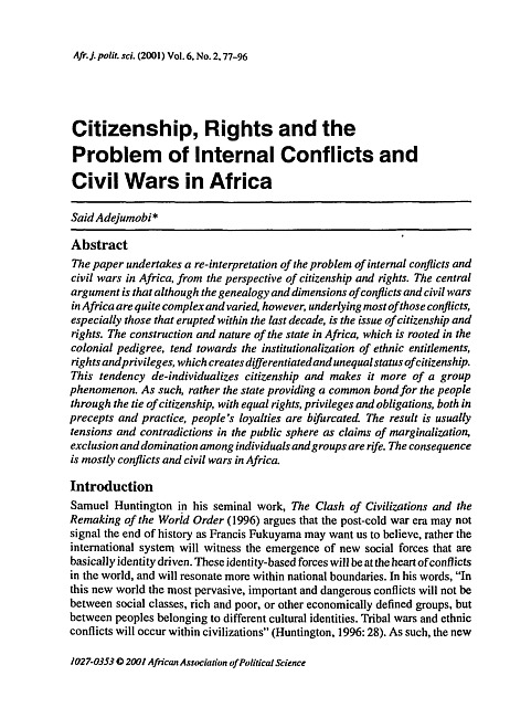 Citizenship, rights and the problem of internal conflicts and civil wars in Africa
