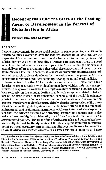 Reconceptualizing the state as the leading agent of development in the context of globalization in Africa
