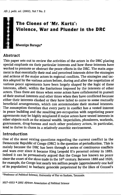 The clones of 'Mr. Kurtz' : violence, war and plunder in the DRC