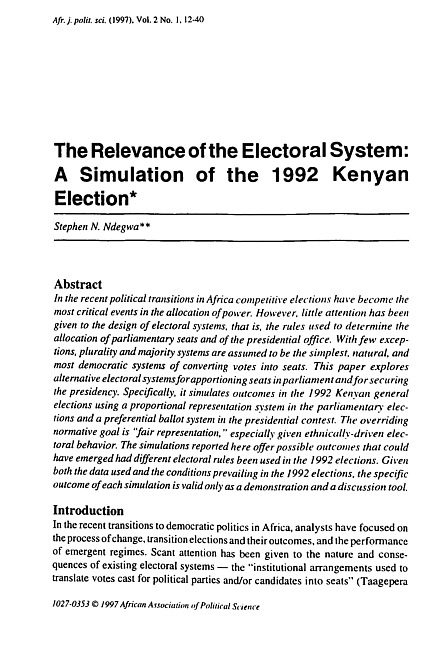 The relevance of the electoral system : a simulation of the 1992 Kenyan election