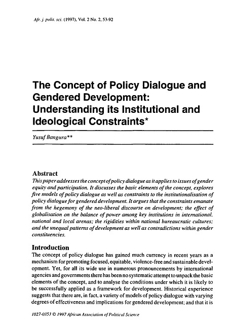 The concept of policy dialogue and gendered development : understanding its institutional and ideological constraints