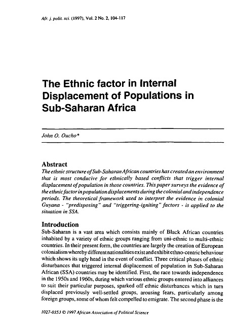 The ethnic factor in internal displacement of populations in Sub-Saharan Africa
