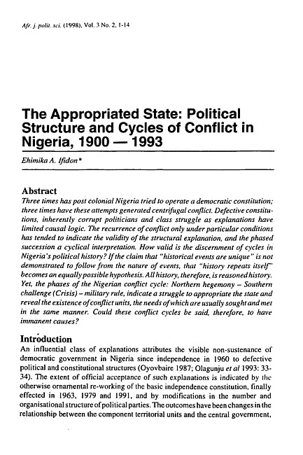 The appropriated state : political structure and cycles of conflict in Nigeria, 1900-1993