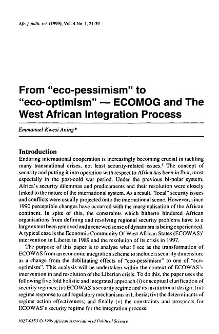 From "eco-pessimism" to "eco-optimism" -- ECOMOG and the West African integration process