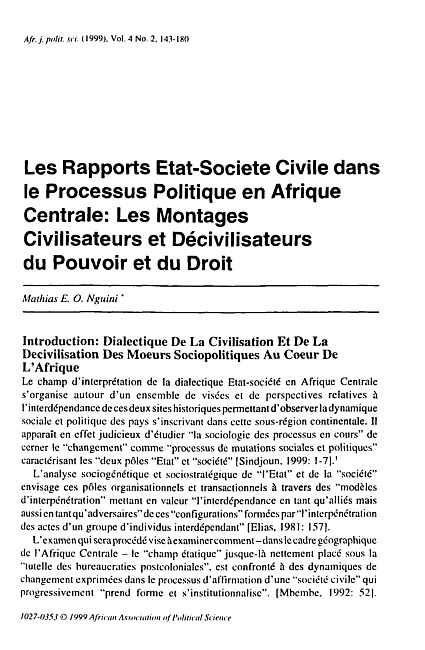 Les rapports état-société civile dans le processus politique en Afrique Centrale : les montages civilisateurs et décivilisateurs du pouvoir et du droit