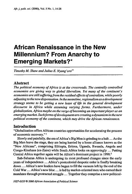 African renaissance in the new millennium? From anarchy to emerging markets?