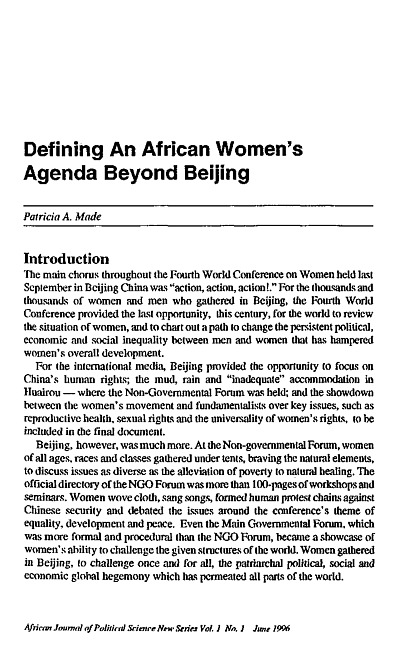 Defining an African women's agenda beyond Beijing