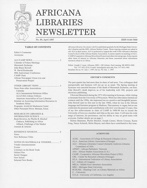 Africana libraries newsletter. No. 90 (1997 April)