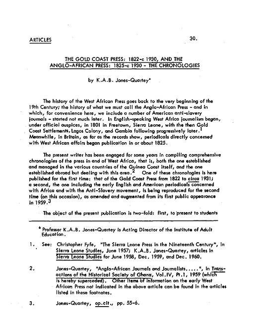 The Gold Coast press : 1822-c1930, and the Anglo-African press: 1825-c1930 - the chronologies