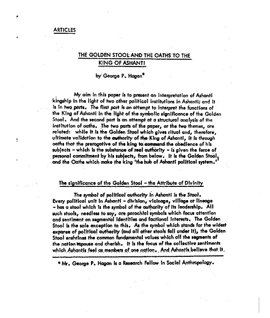 The golden stool and the oaths to the King of Ashanti
