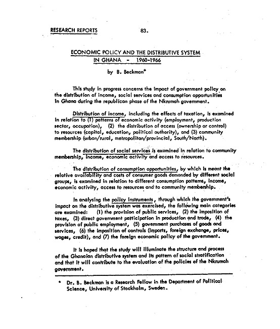 Economic policy and the distribution system in Ghana - 1960-1966
