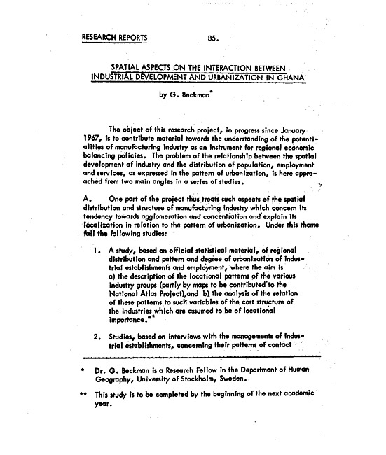 Spatial aspects on the interaction between industrial development and urbanization in Ghana