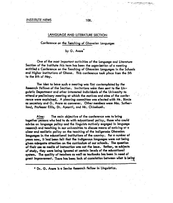 Language and literature section : Conference on the Teaching of Ghanaian Languages
