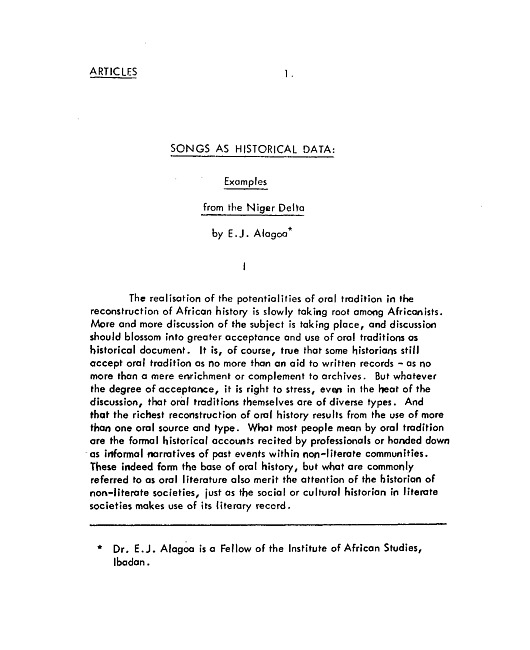 Songs as historical data : examples from the Niger Delta