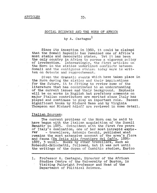 Social sciences and the Horn of Africa