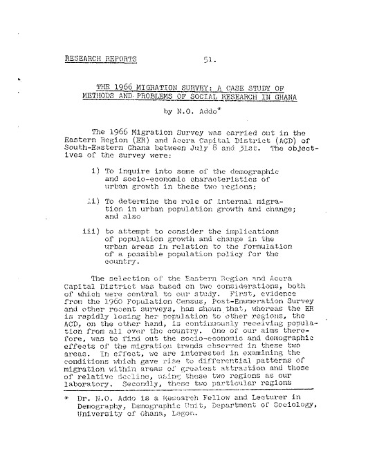 The 1966 migration survey : a case study of methods and problems of social research in Ghana