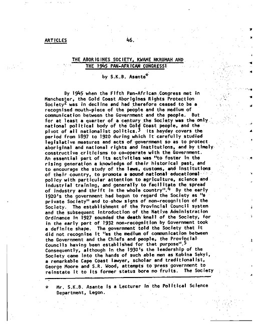 The aborigines society, Kwame Nkrumah and the 1945 Pan-African Congress