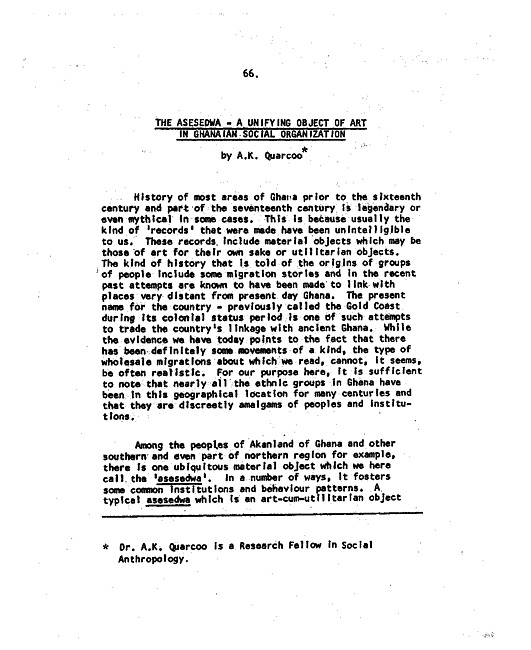 The Asesedwa - a unifying object of art in Ghanaian social organization