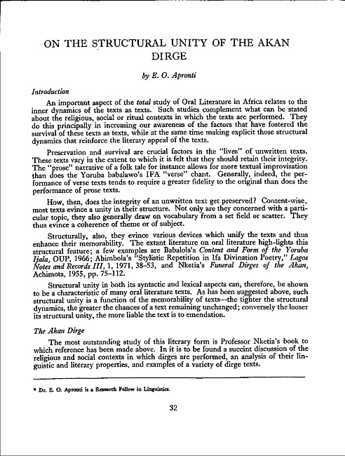 On the structural unity of the Akan dirge