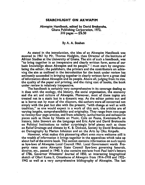 Review of: David Brokensha (ed.). Akwapim Handbook. Tema: Ghana Publishing Corporation, 1972