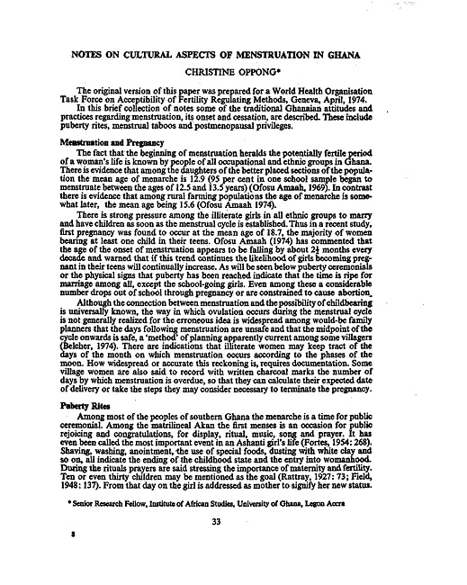 Notes on cultural aspects of menstruation in Ghana