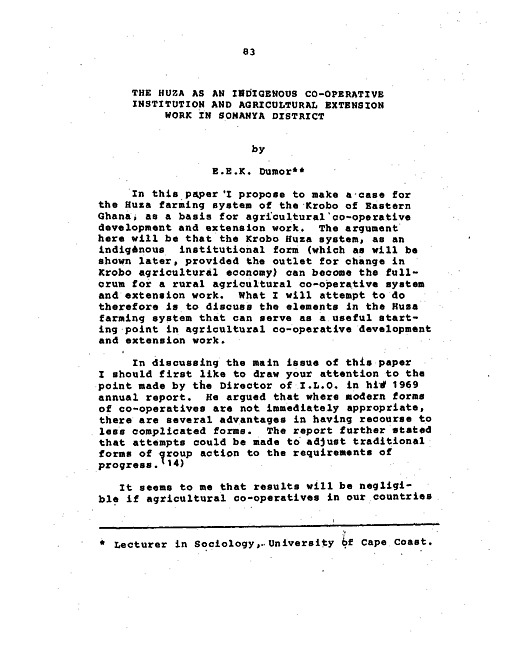 The Huza as an indigenous co-operative institution and agricultural extension work in Somanya District