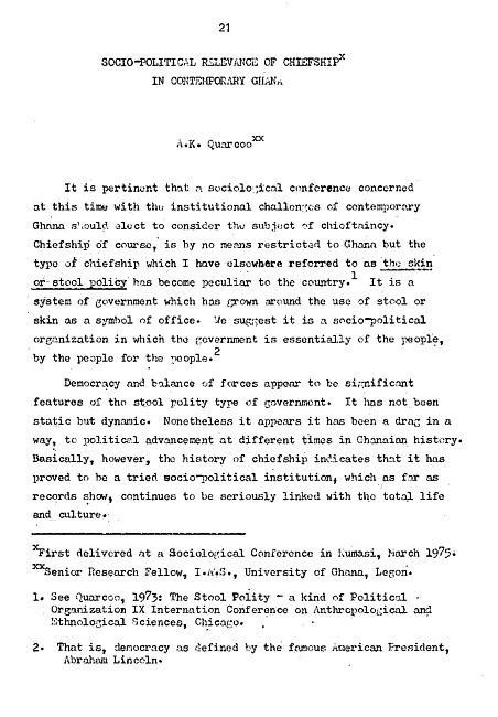Socio-political relevance of chiefship in comtemporary Ghana