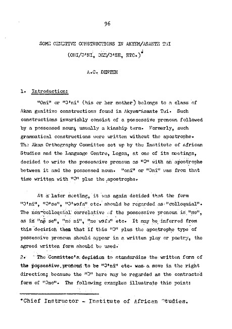 Some genetive constructions in Akyem/Asante Twi (Oni/O'ni, Ose/O'se, etc.)