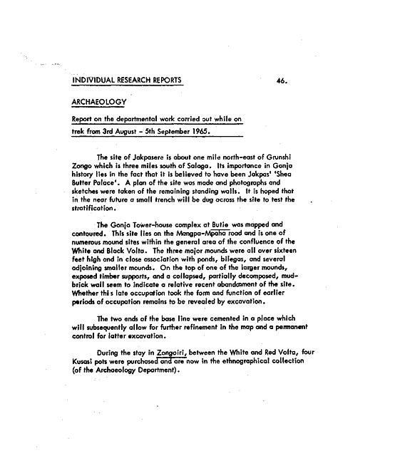 Archaeology : report on the departmental work carried out while on trek from 3rd August - 5th September 1965