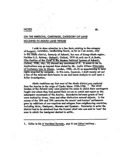 On the Hwesoni, caretaker, category of land holding in Ahafo land tenure
