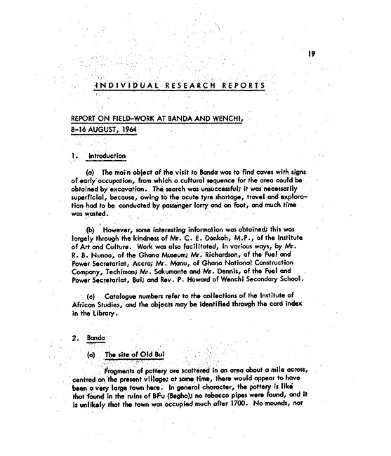 Report on field-work at Banda and Wenchi, 8-16 August, 1964