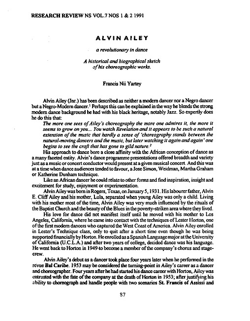 Alvin Ailey : a revolutionary in dance - a historical and biographical sketch of his choreographic works