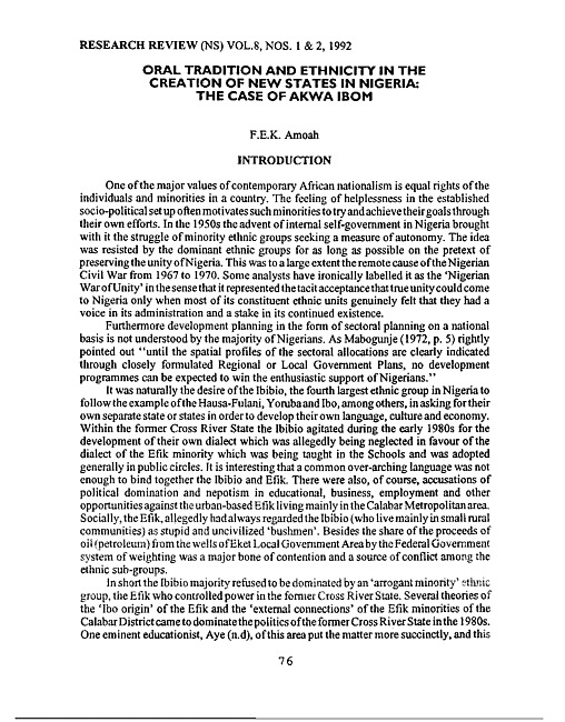 Oral tradition and ethnicity in the creation of new states in Nigeria : the case of Akwa Ibom
