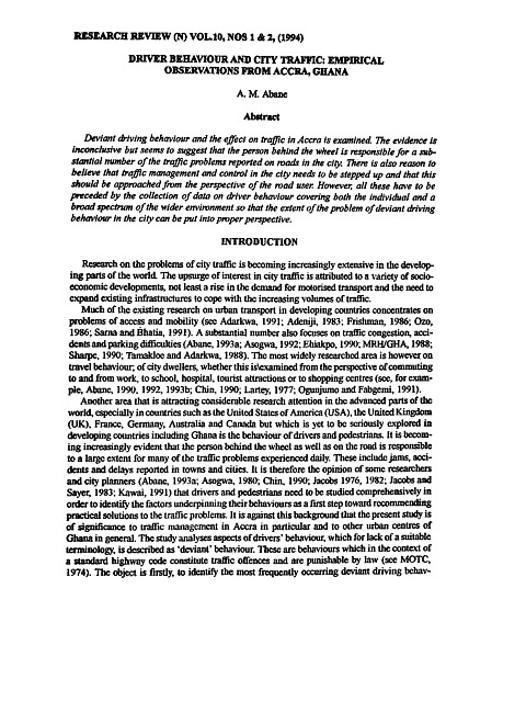 Driver behaviour and city traffic : empirical observations from Accra, Ghana