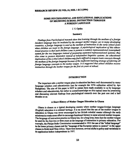 Some psychological and educational implications of receiving school instruction through a foreign language