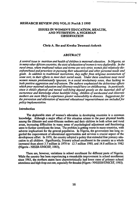 Issues in women's education, health, and nutrition : a Nigerian observation