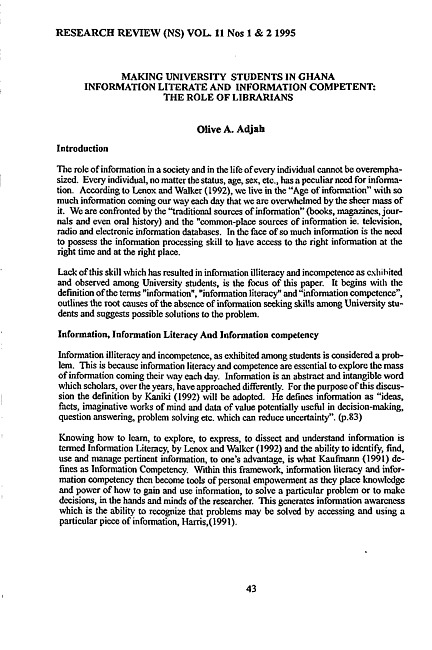 Making university students in Ghana information literate and information competent : the role of librarians