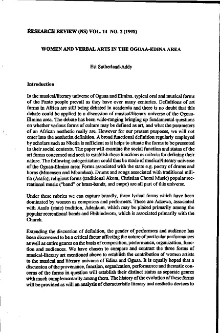 Women and verbal arts in the Oguaa-Edina area
