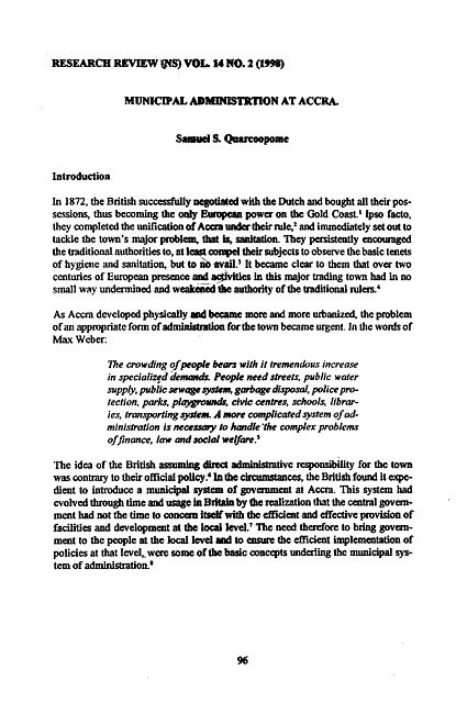 Municipal administration at Accra