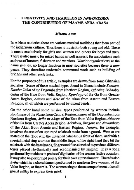 Creativity and tradition in Nnwonkoro : the contribution of Maame Afua Abasa