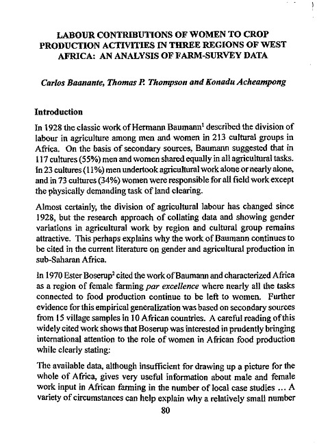 Labour contributions of women to crop production activities in three regions of West Africa : an analysis of farm-survey data