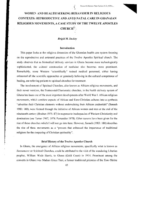 Women and health seeking behaviour in religious contexts : reproductive and ante-natal care in Ghanaian religious movements, a case study of the Twelve Apostles Church