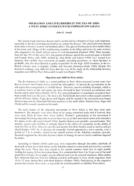 Migration and livelihoods in the era of AIDS : a West African focus with emphasis on Ghana