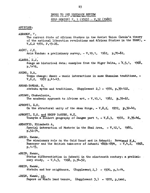 Index to the Research review (Old series) v.1 (1965) - v.12 (1980)