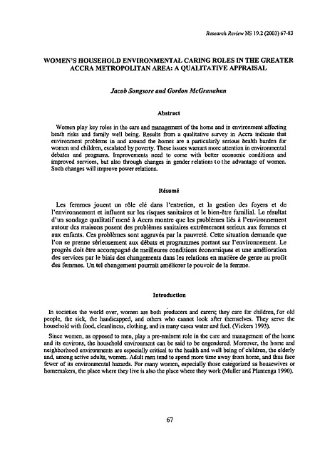 Women's household environmental caring roles in the Greater Accra Metropolitan Area : a qualitative appraisal