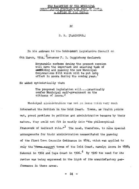 The rejection of the Municipal Corporations Ordinance of 1924 at Accra : a review of the causes